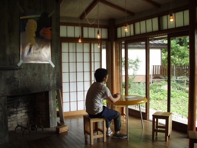 青柳拓次さん「たであい」をかけつつ、熱いお茶を啜っています。
