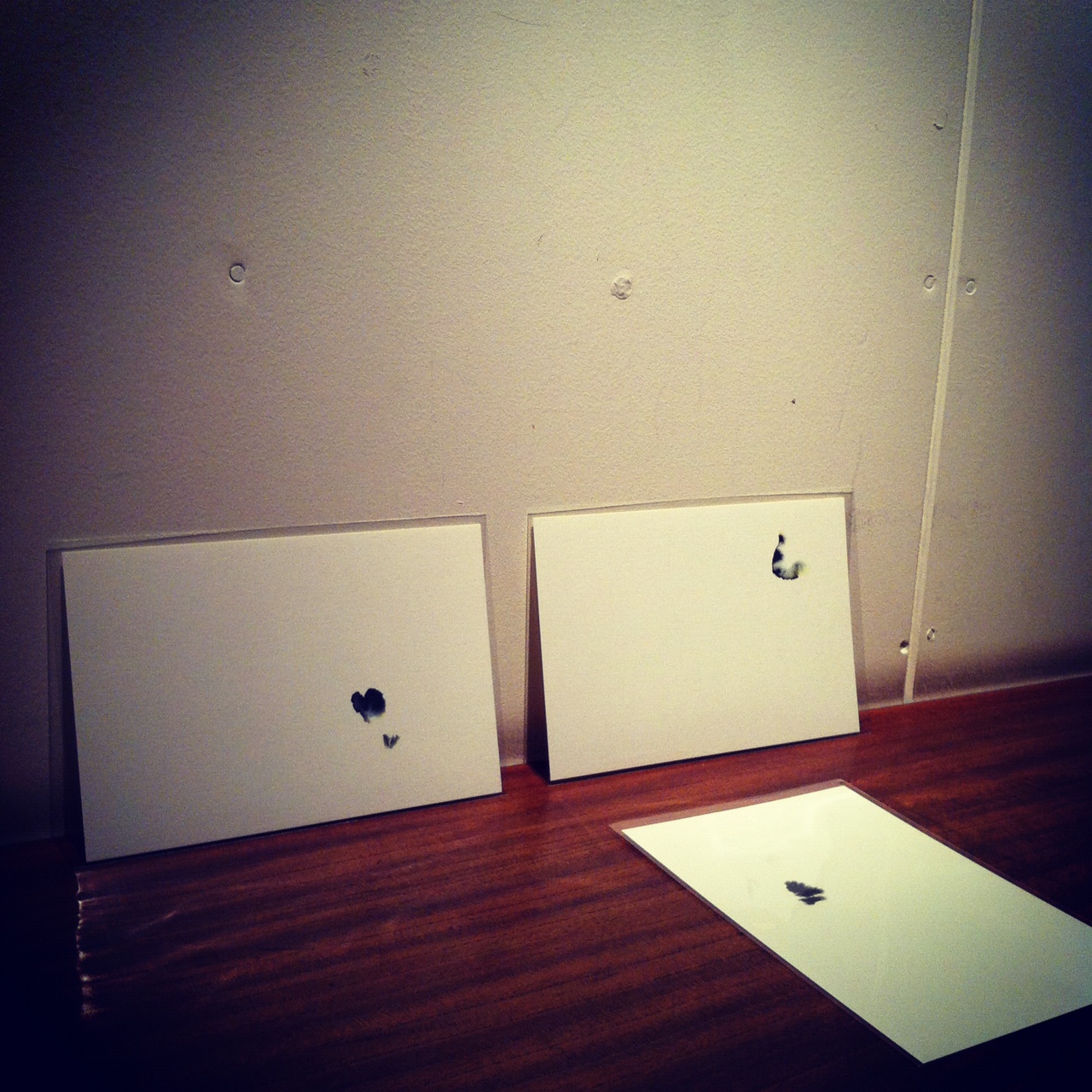 この夏の津田さんの、鉱質インクと音の滲みによるインスタレーションから生まれたカード。
