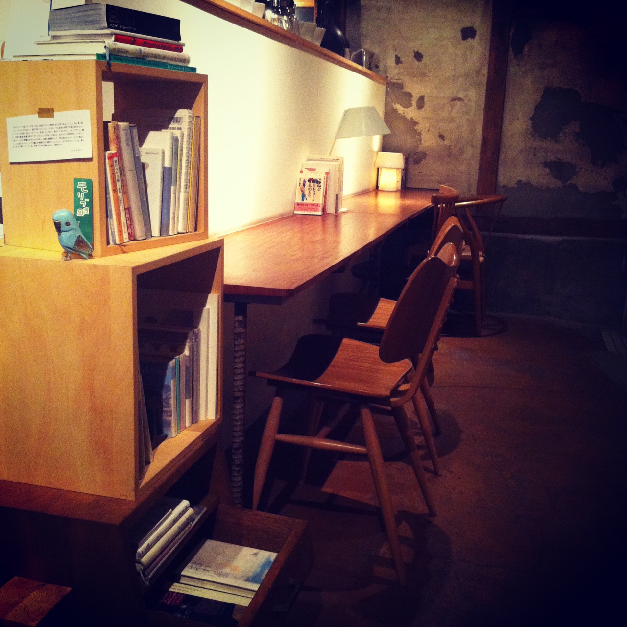 cartaの古ぼけた壁についているちいさな三段の棚。