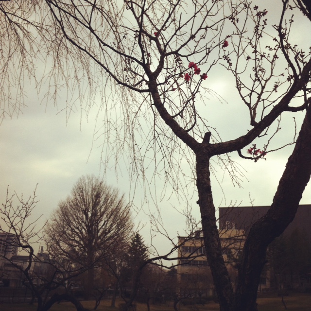 cartaの近くの公園、ようやく梅が咲き始めました。