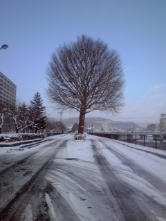 今日は雪で真っ白で、きりっとした寒い日。