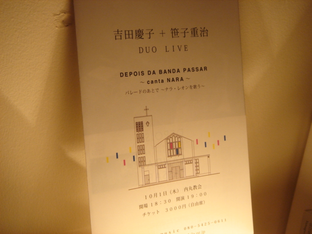 10/1の吉田さんと笹子さんのライブのフライヤーが届きました。